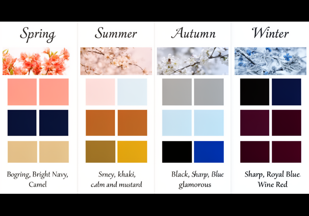 - Winter(ブルベ冬): シャープで華やかな印象。黒、ロイヤルブルー、ワインレッドなどの鮮やかな色が映えます。存在感があり、威厳を感じさせるスタイルが得意です。